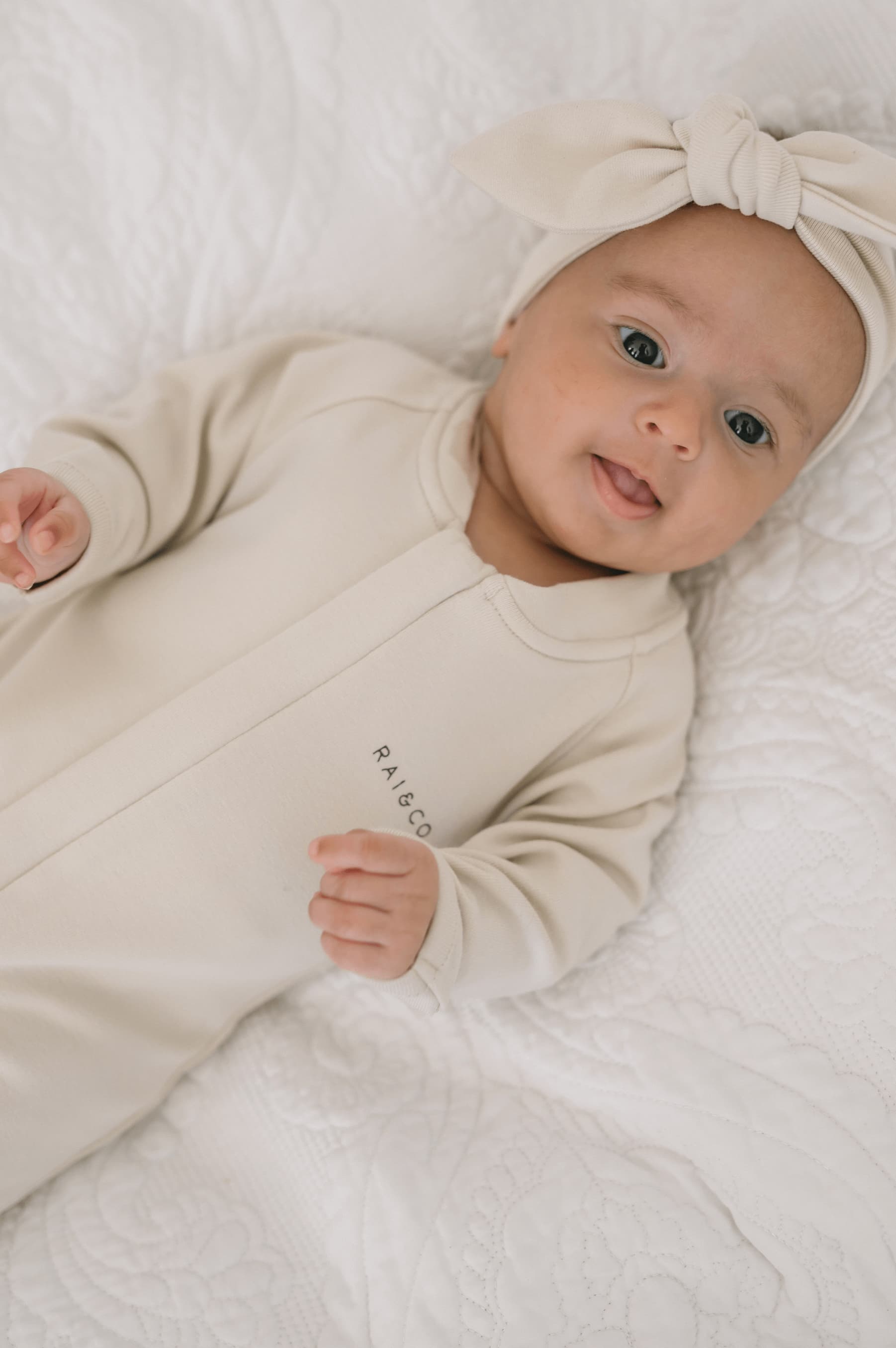 Welcoming our new little addition to the RAI&CO family are the knotted headbands. Who doesn't love an oversized bow headband on a little baby. Made from matching material to our Apple jumpsuits. Super stretchy and soft.
